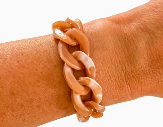 Add a pop of color to your outfit with our All Chunky Acrylic Chain Link Bracelet! This 7" bracelet features a small gold chain extension and lobster clasp for the perfect fit. Its flat chain link design is both chic and versatile, making it a must-have for every woman's wardrobe. Measures 8.5" in total length and 0.5" wide.