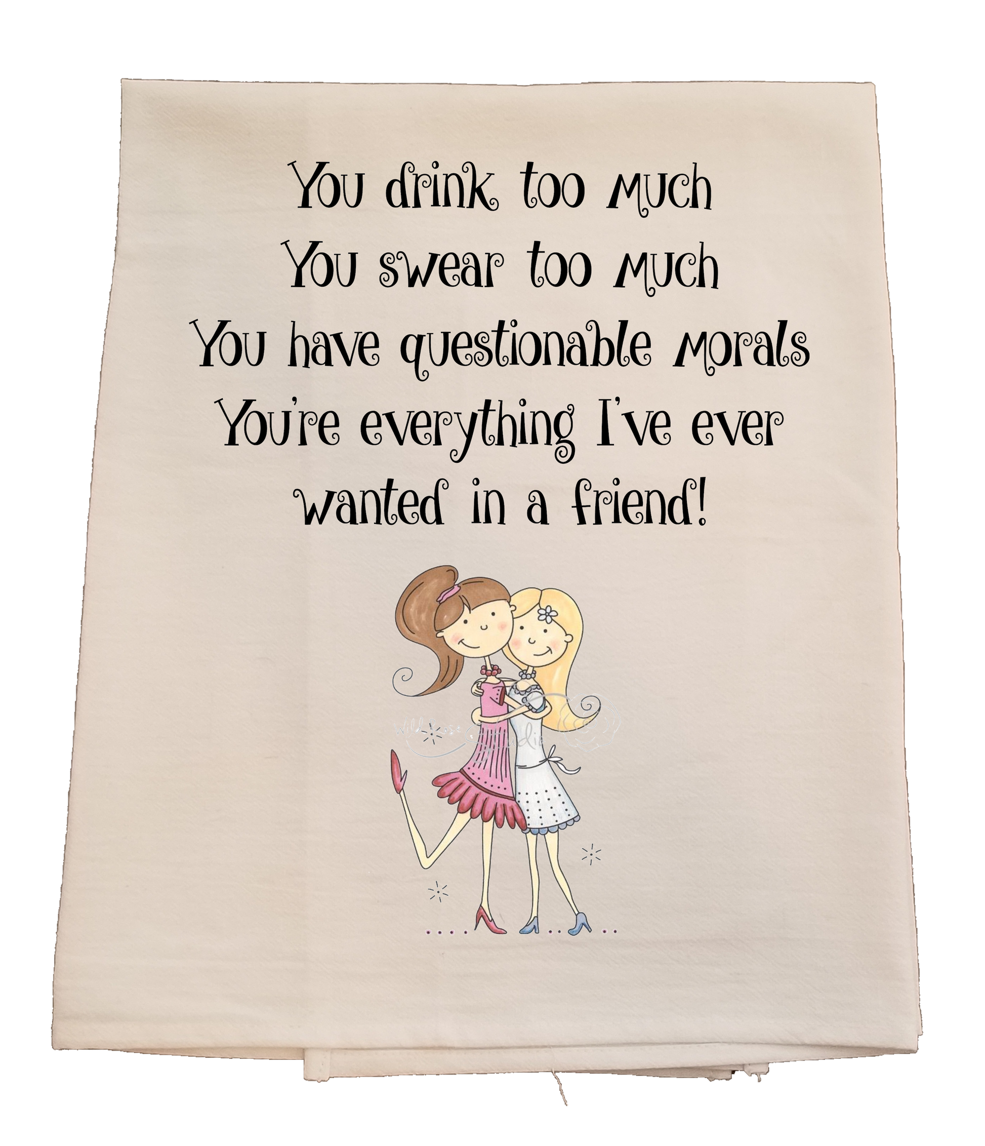 Meet the Best Friend Tea Towel—a delightful upgrade for your kitchen vibes. Sized at 28x28 and made from 100% cotton, it soaks up spills with ease and stands up to everyday wear. Perfect for daily use, it brings both function and a sprinkle of fun to your cooking space.