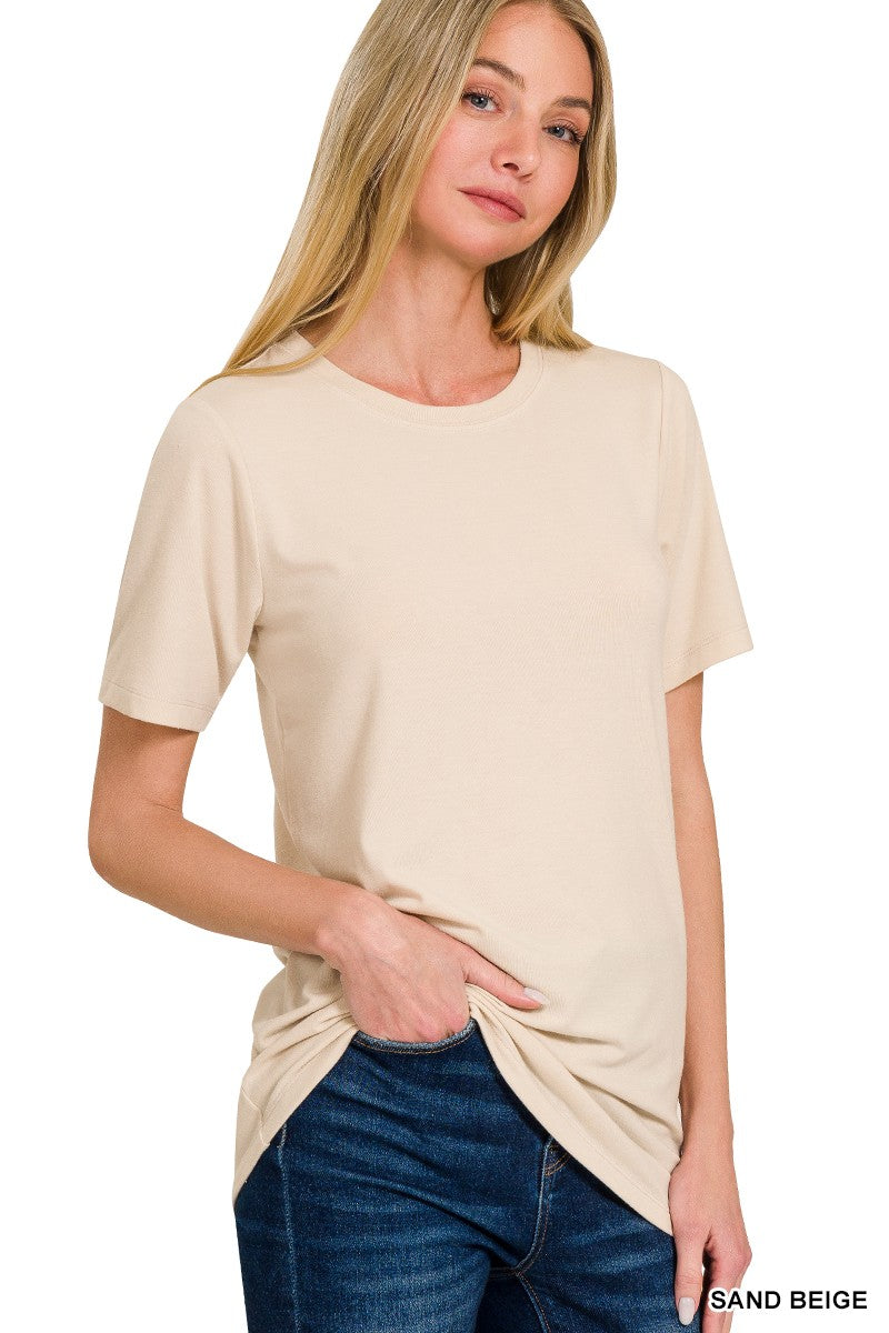 This playful silky soft cotton tee features a relaxed boyfriend fit with a classic round neck and short sleeves. Made from lightweight 100% cotton, it’s perfect for easy, breezy days.