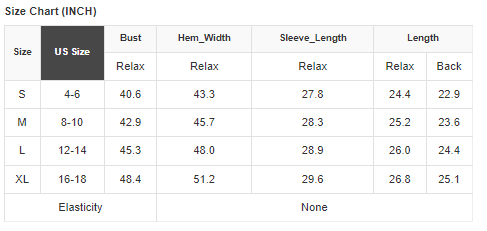 US Size Range. Small 0-4, Medium 6-8, Large 10-12, XL 14-16, 2X 18-20