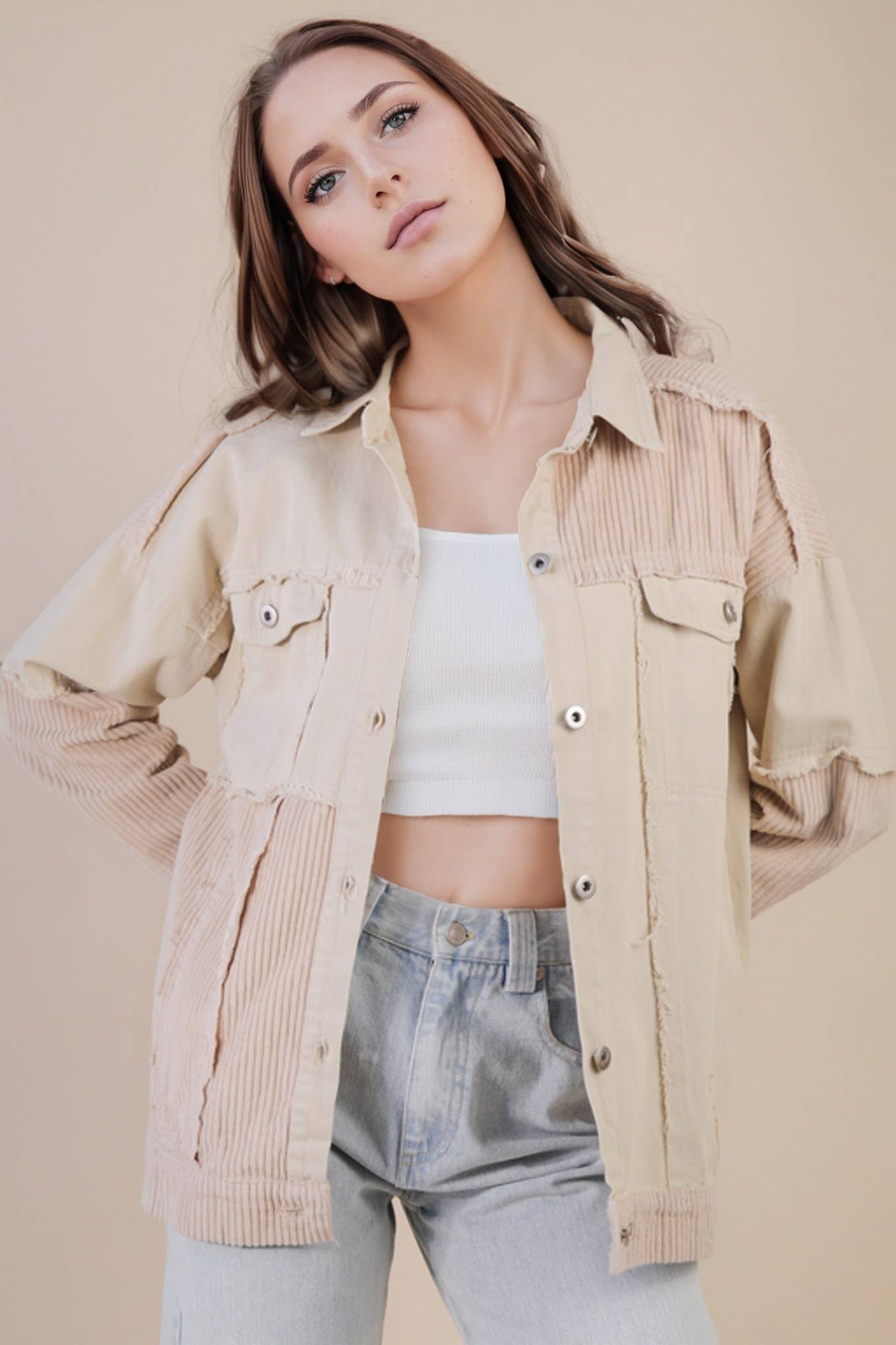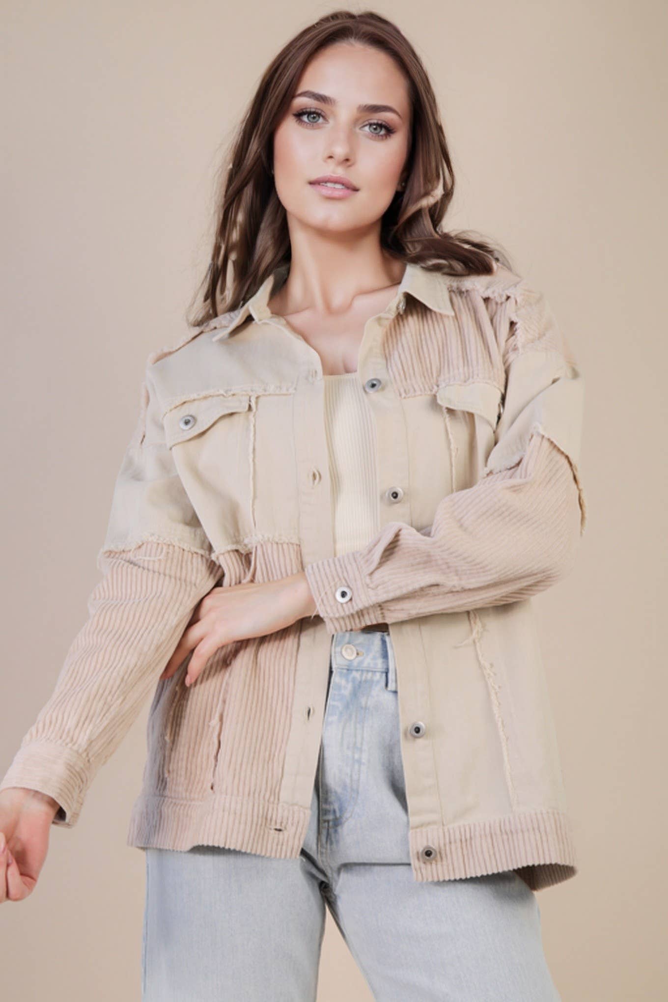 - PLUS SIZE Oversized Color Block Washed Shacket Jacket