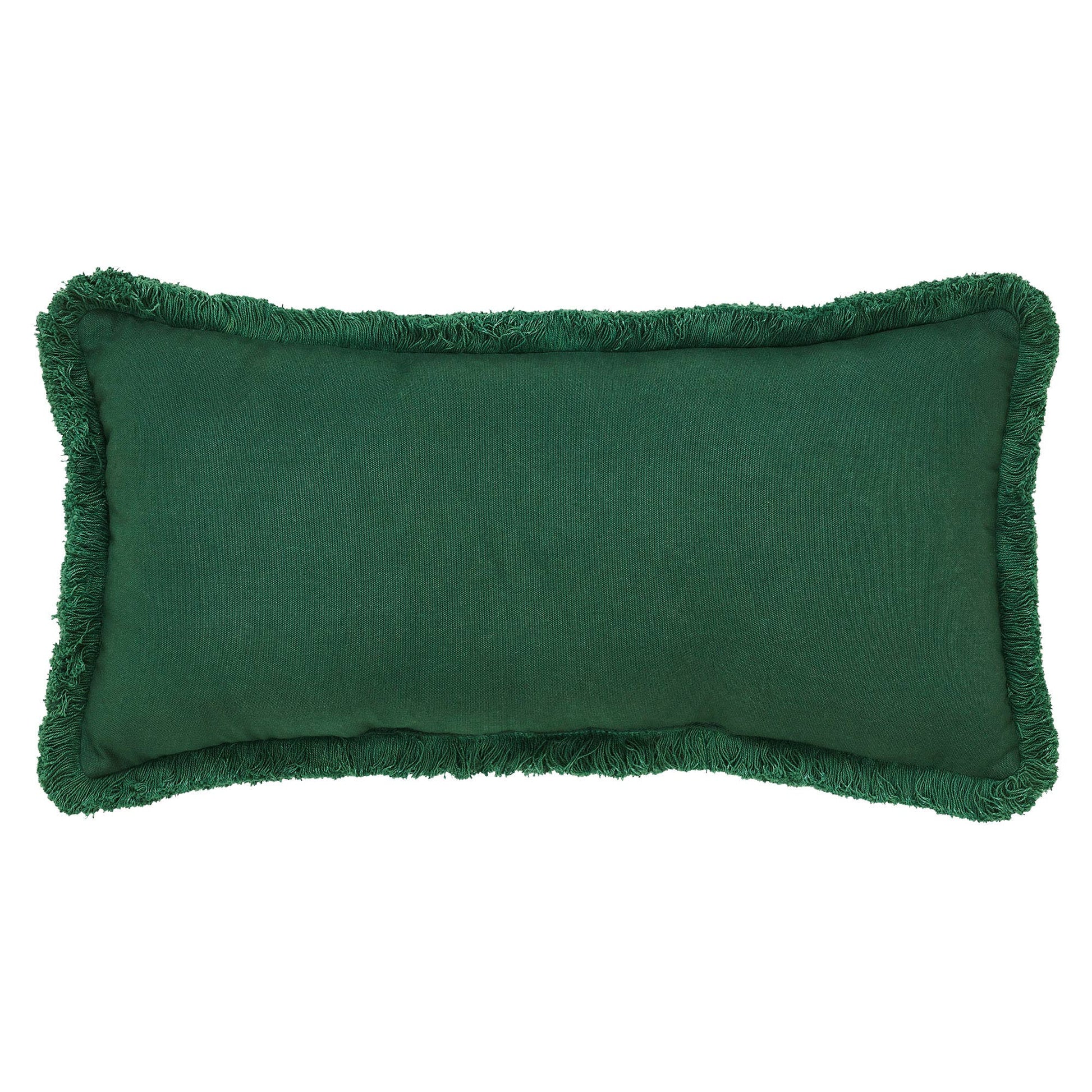 Transform your space into a festive wonderland with this charming Nutcracker Green Fringed Pillow. Featuring five dapper nutcrackers in their finest red, blue, and gold regalia, this 12x24 rectangular accent piece brings holiday magic to life. Intricate embroidery and pearl bead accents dance across a deep green cotton canvas, while printed stars, ornaments, and candy canes peek through the design. A playful fringe border frames the whole cheerful scene, making it the perfect companion for sofas, benches, or beds in farmhouse and rustic settings. Spot clean only. Not suitable for children under three.
