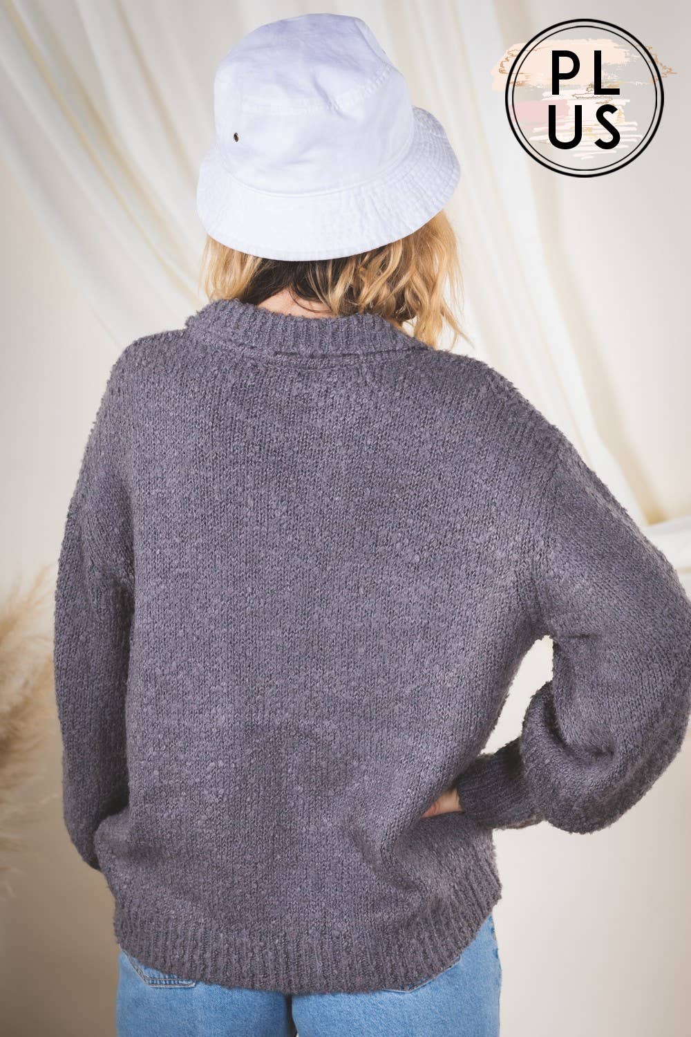 - Collared solid knit cozy sweater top