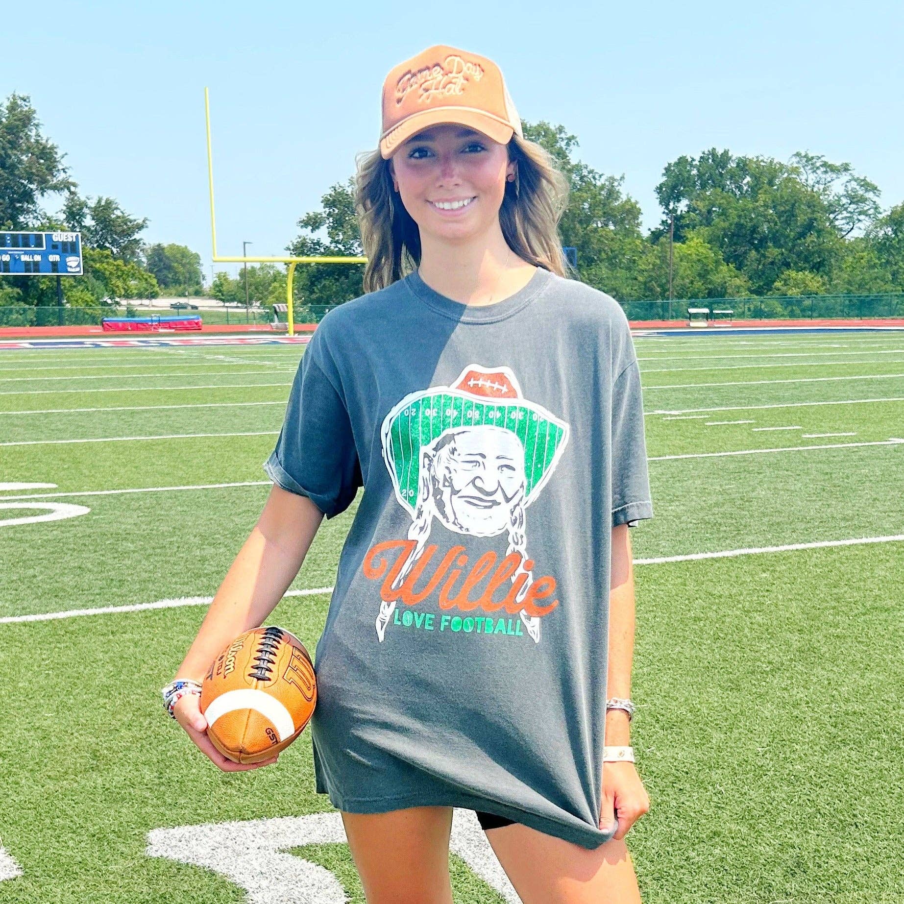 Get ready to show off your love for Willie Nelson and football with the Willie Love Football Tee! Score a touchdown with this unique tee, perfect for any fan.